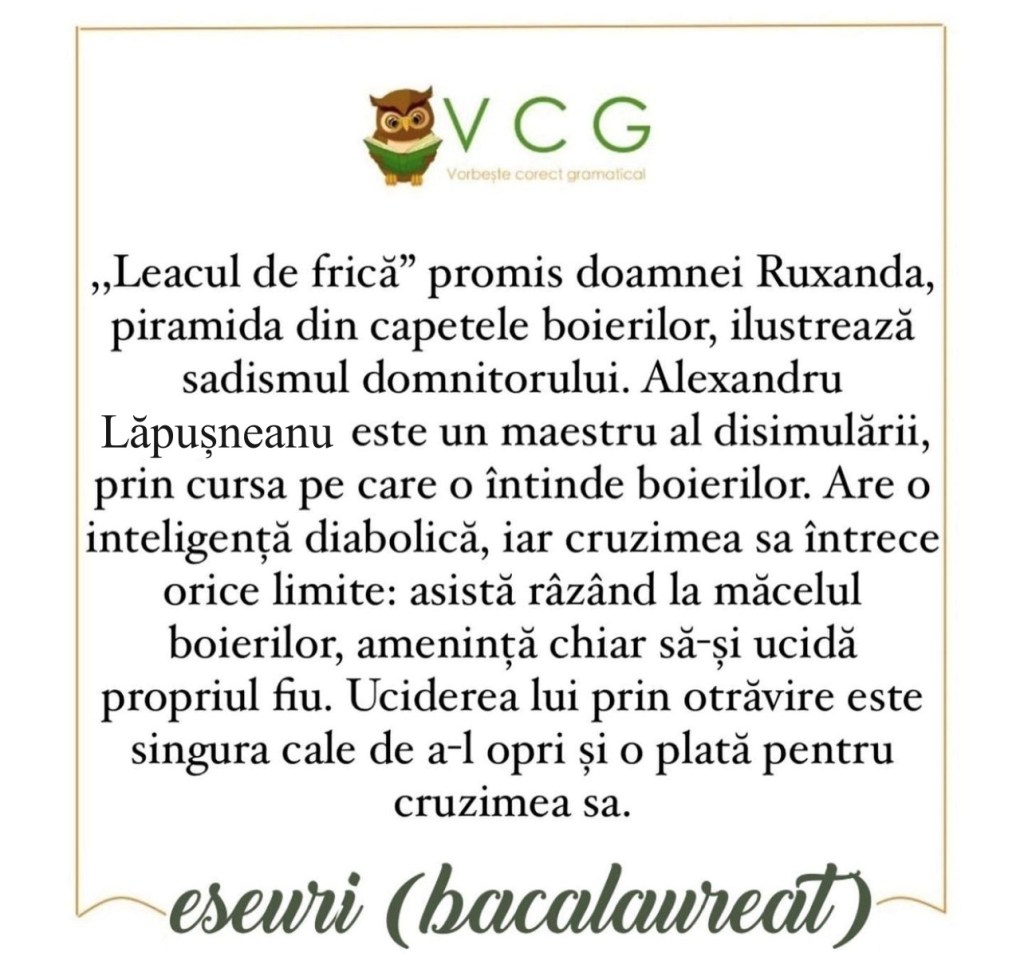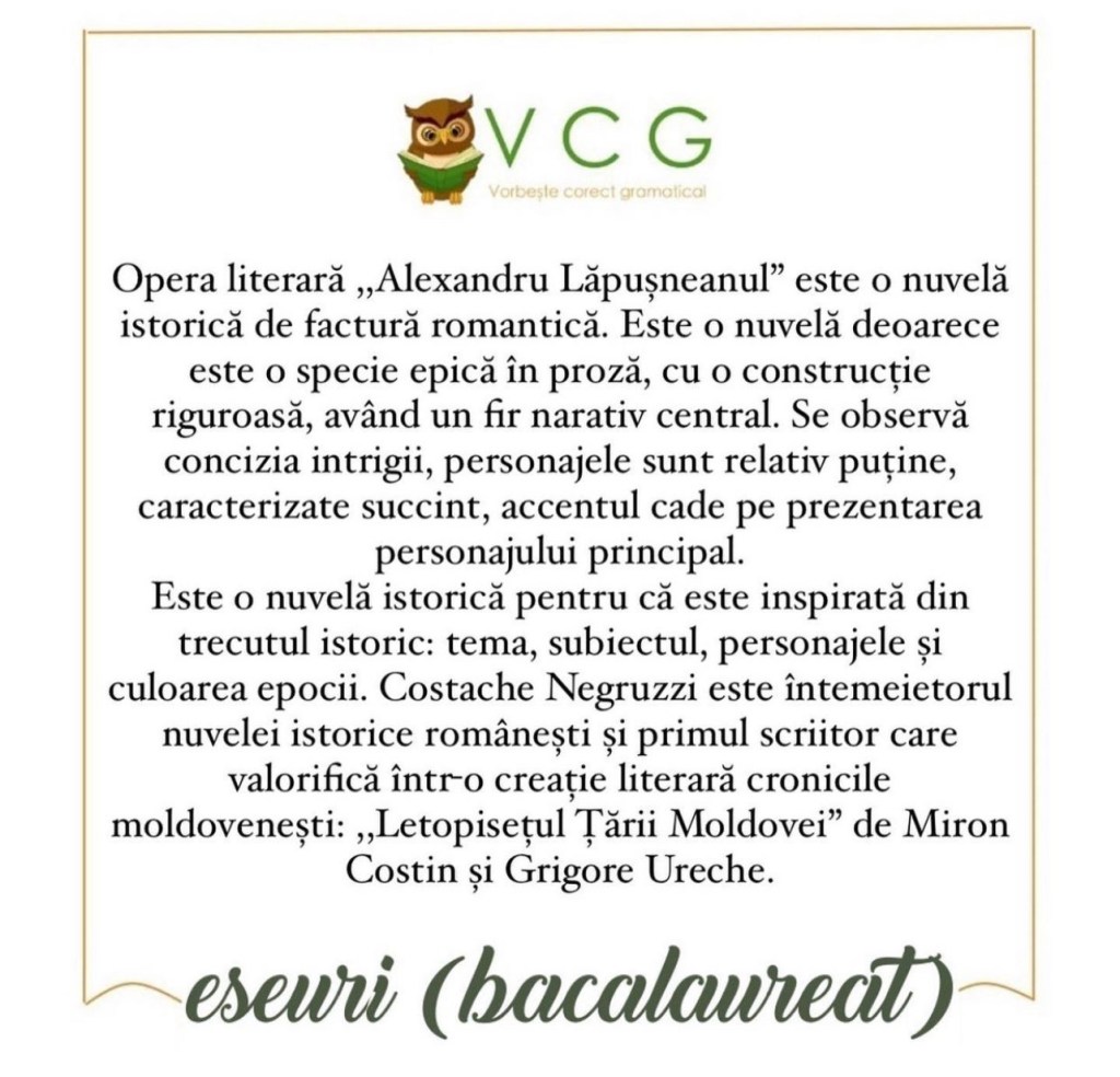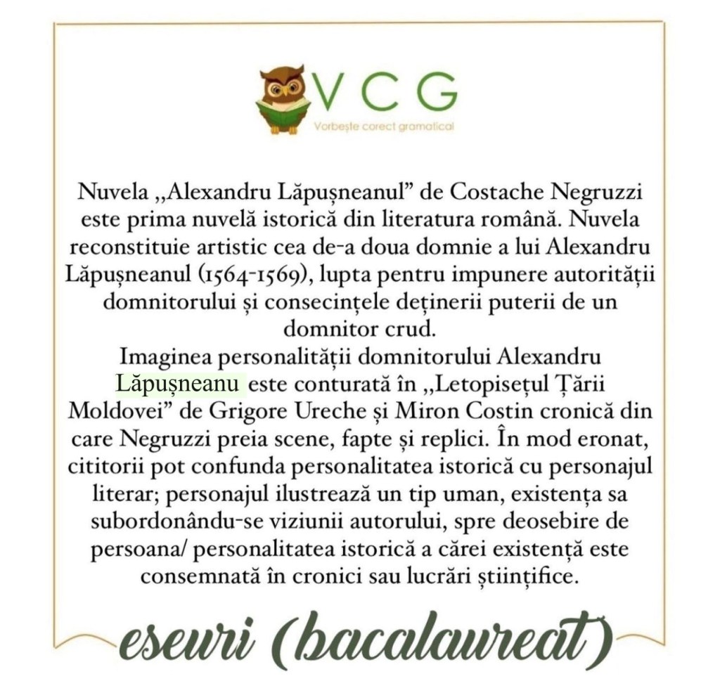 ALEXANDRU LĂPUȘNEANUL – COSTACHE NEGRUZZI (CARACTERIZAREA LUI ALEXANDRU LĂPUȘNEANU) Publicat pe 21 iulie 202222 iulie 2022 de VCGLasă un comentariu Distribuie: Dă clic pentru a partaja pe Facebook(Se deschide într-o fereastră nouă) Facebook Dă clic pentru partajare pe WhatsApp(Se deschide într-o fereastră nouă) WhatsApp Dă clic pentru a trimite o legătură prin email unui prieten(Se deschide într-o fereastră nouă) Email Apreciază Încarc...