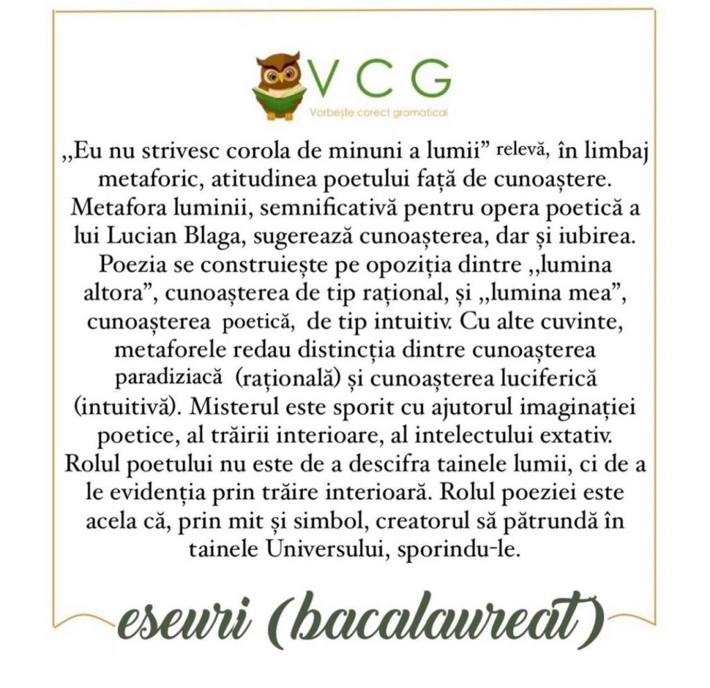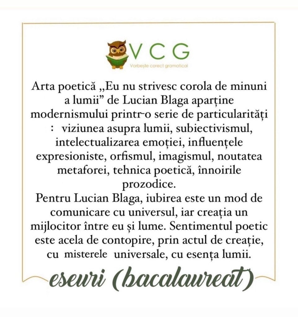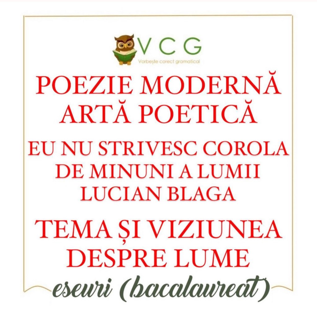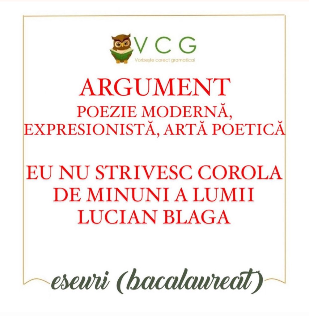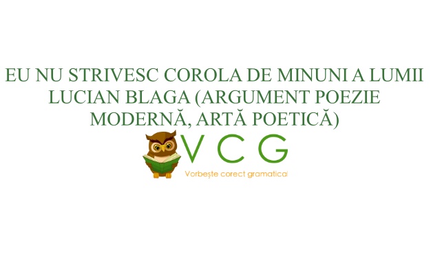EU NU STRIVESC COROLA DE MINUNI A LUMII – LUCIAN BLAGA (ARGUMENT POEZIE MODERNĂ, ARTĂ POETICĂ)