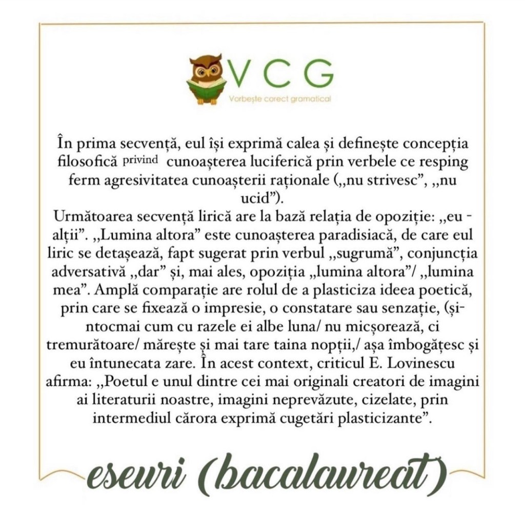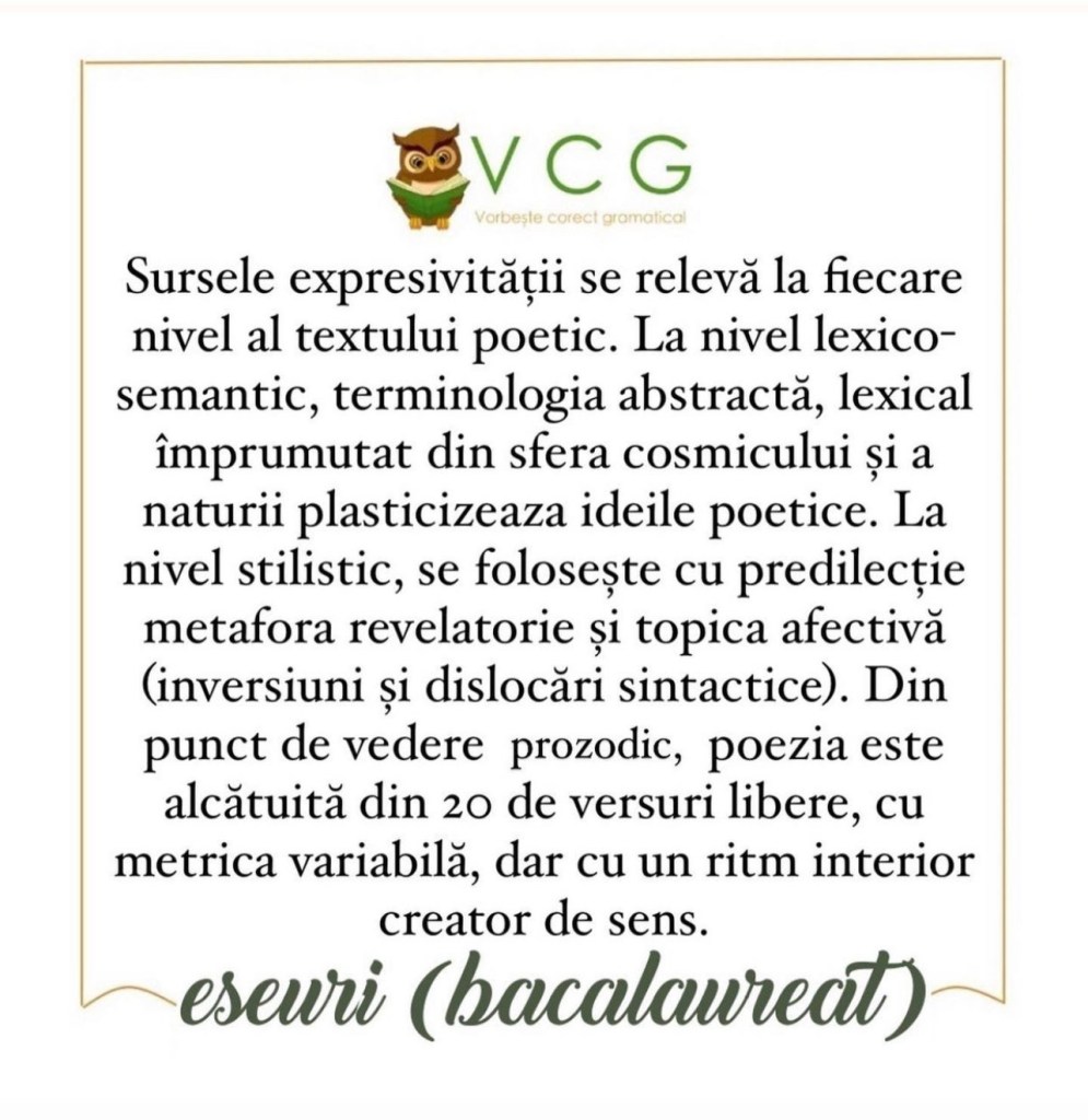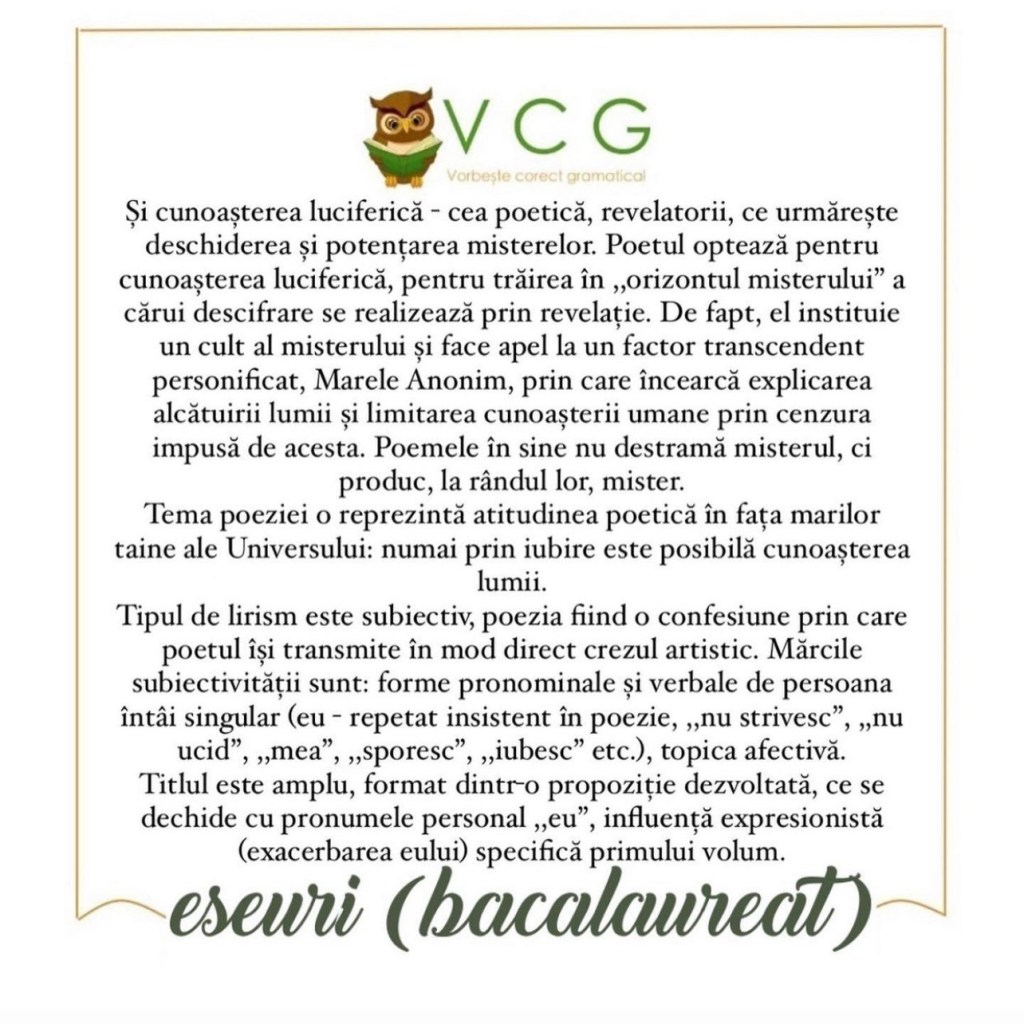 Informațiile sunt luate și din cartea ,,Limba și literatura română – Ghid complet pentru bacalaureat” – Mimi Gramnea și Dorica Boltașu Nicolae