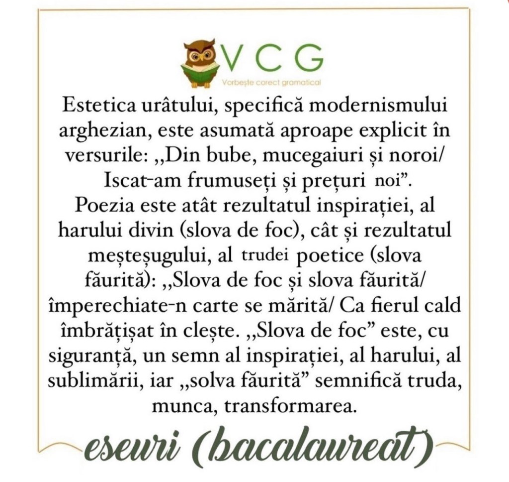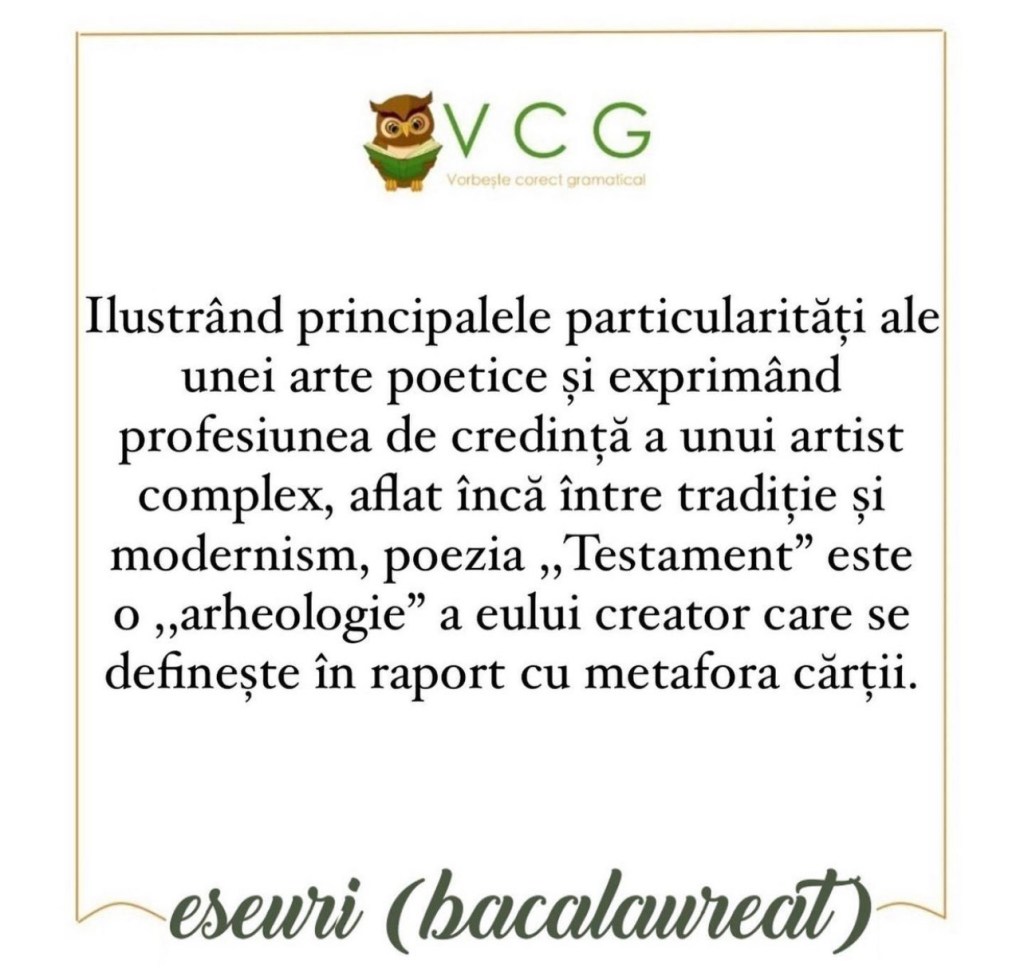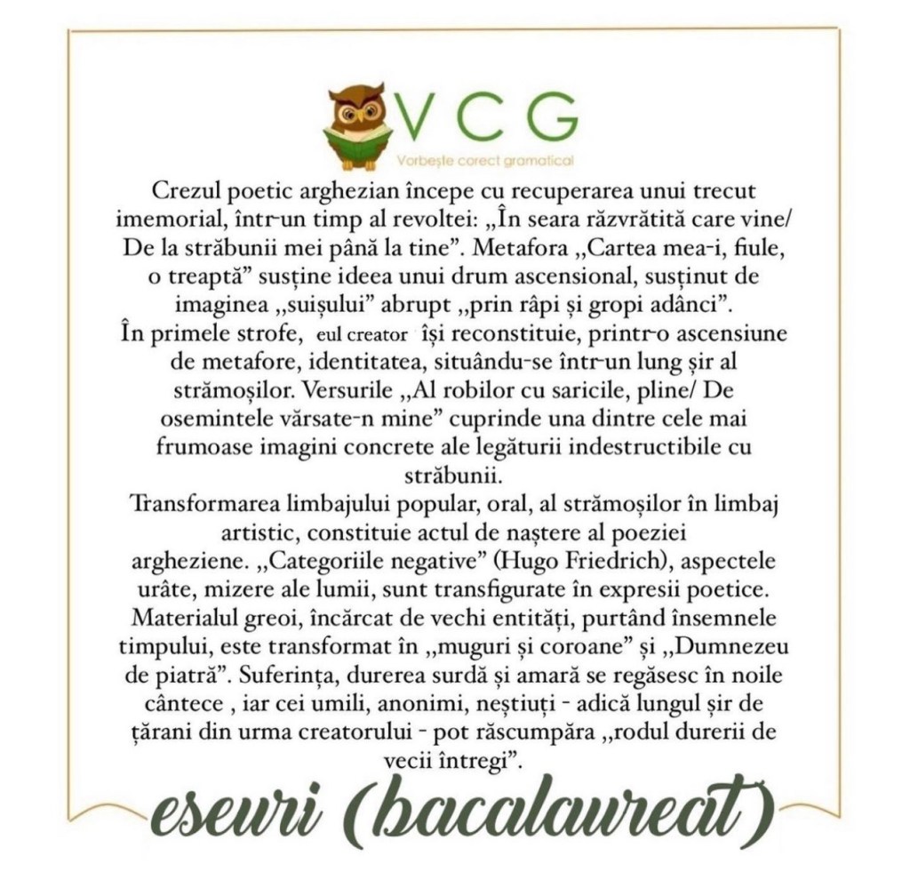 Informațiile sunt luate și din cartea ,,Limba și literatura română – Ghid complet pentru bacalaureat” – Mimi Gramnea și Dorica Boltașu Nicolae