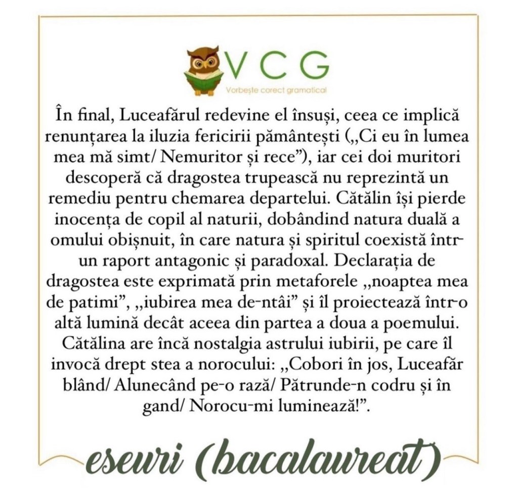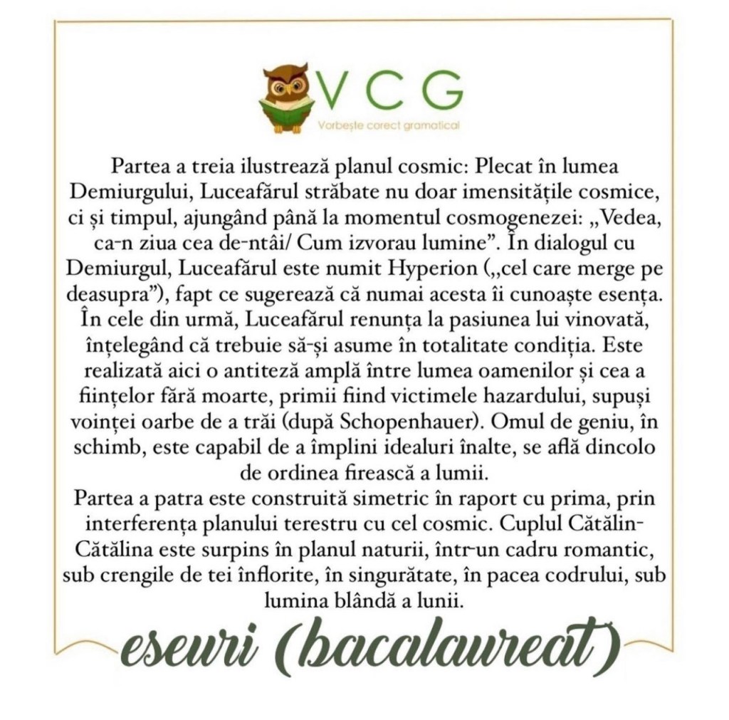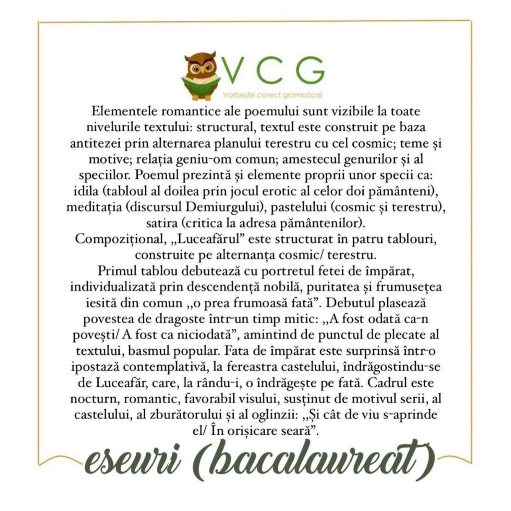 LUCEAFĂRUL – MIHAI EMINESCU (TEMA ȘI VIZIUNEA DESPRE LUME) Publicat pe 20 iulie 202222 iulie 2022 de VCGLasă un comentariu Reclame Distribuie: Dă clic pentru a partaja pe Facebook(Se deschide într-o fereastră nouă) Facebook Dă clic pentru partajare pe WhatsApp(Se deschide într-o fereastră nouă) WhatsApp Dă clic pentru a trimite o legătură prin email unui prieten(Se deschide într-o fereastră nouă) Email Apreciază Încarc...